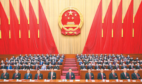 3月13日,第十四届全国人民代表大会第一次会议在北京人民大会堂闭幕。习近平等党和国家领导人在主席台就座。新华社记者 黄敬文摄